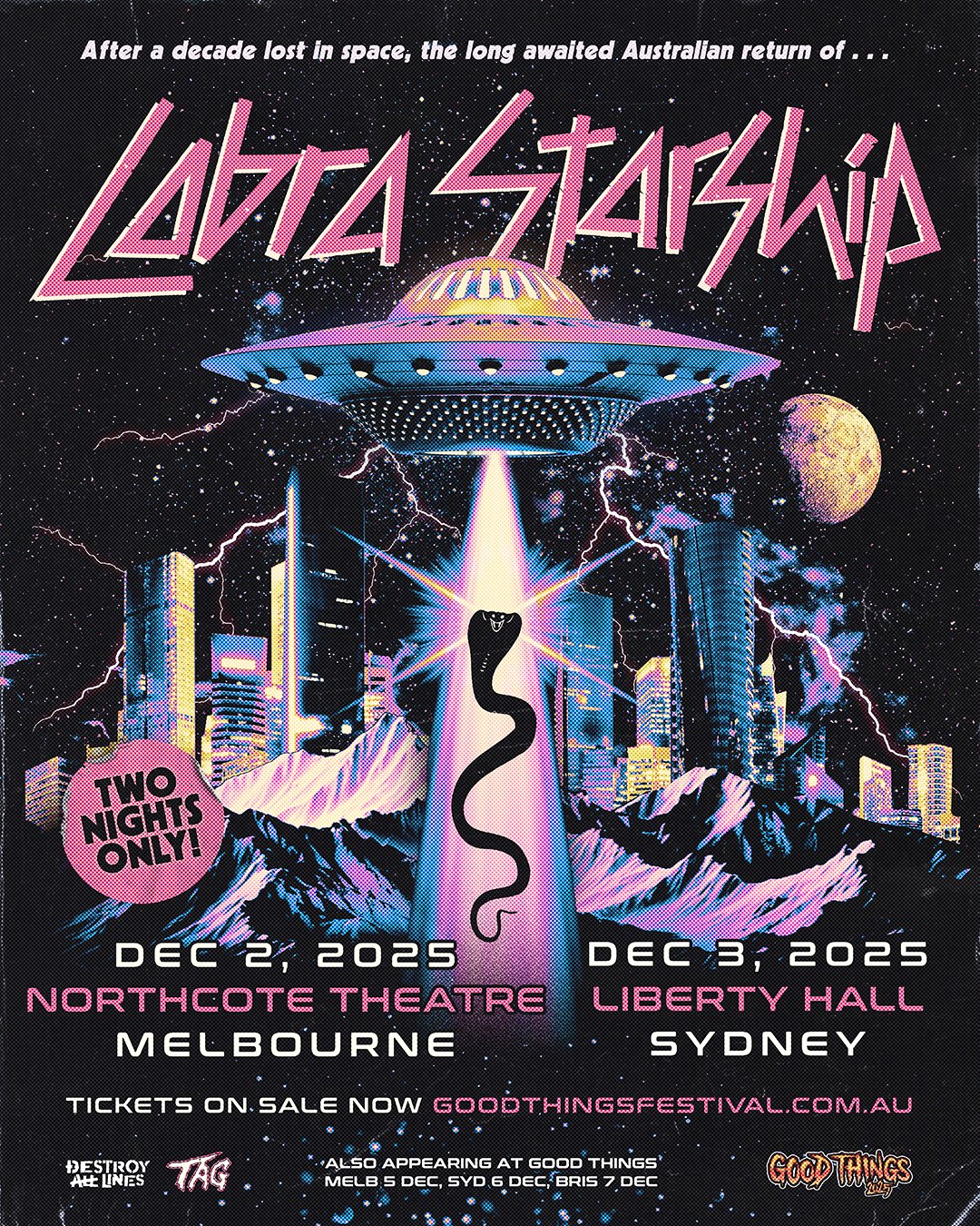 Thanks to Cobra Starship, Mannequin Death Squad, Destroy All Lines, Dallas Does PR and the Northcote Theatre for having us along.