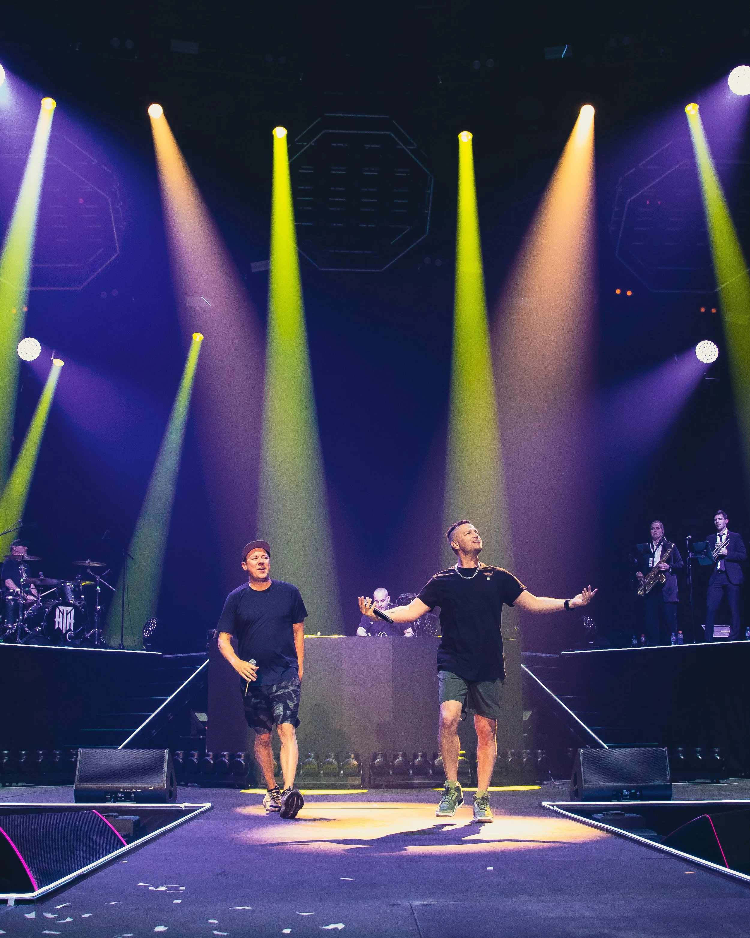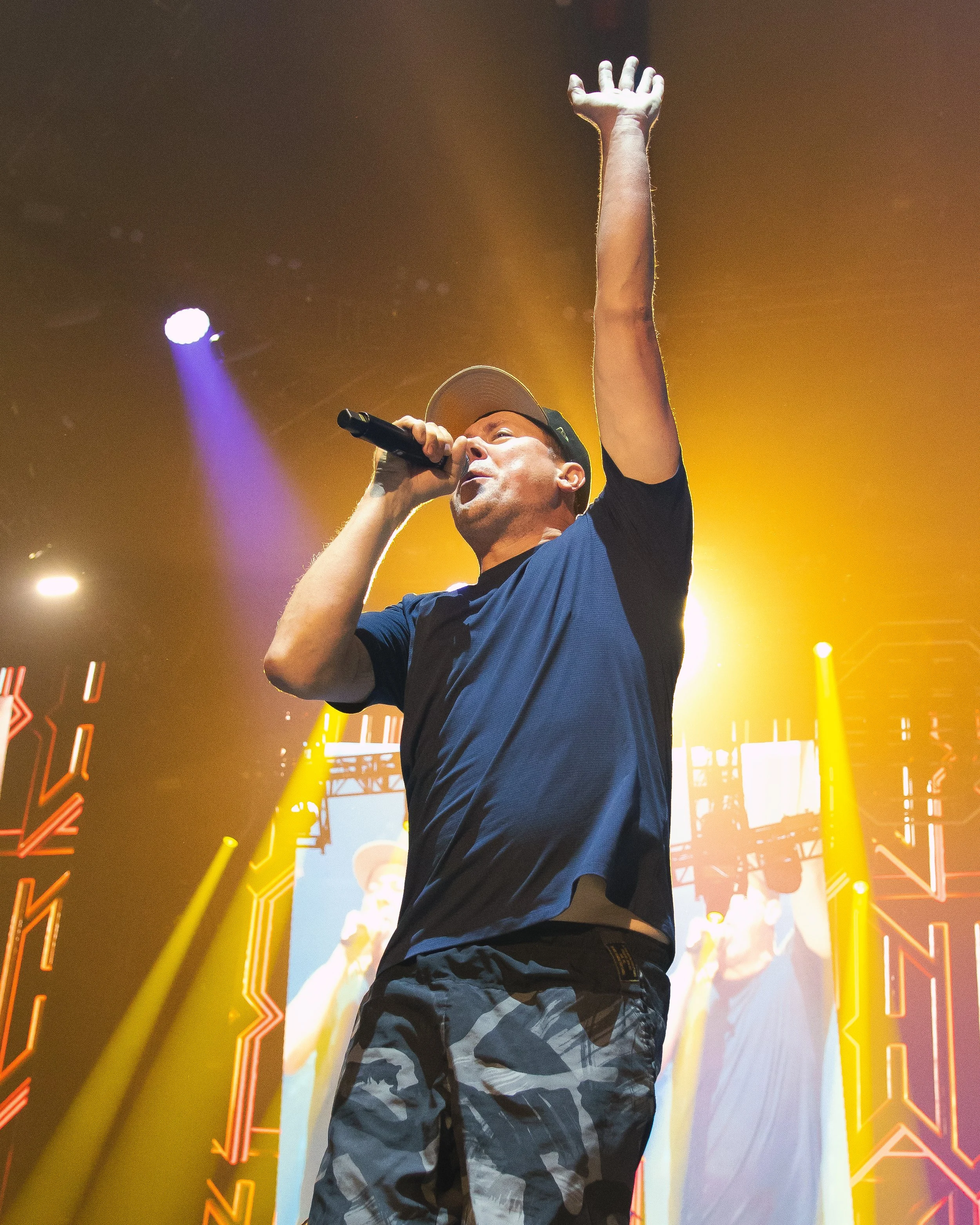 Hilltop Hoods kicked off their set with instant energy, grabbing the crowd’s attention from the first beat. Opening with their hit song Leave Me Lonely from their 2019 album The Great Expanse had fans on their feet right away, singing and moving along to the high energy first song as lights, visuals and confetti lit up the stage, this setting the tone for an exciting night. Before the first song had even finished the duo front men Suffa and Pressure made full use of the large stage covering all grounds. Third song in Hilltop Hoods paused before the start of The Nose Bleed Section to dedicate a song to a young fan who was attending her very first Hilltop Hoods concert. A small but heartfelt moment that Hilltop Hoods do every show to welcome and show love back to the new fans who attend their show.