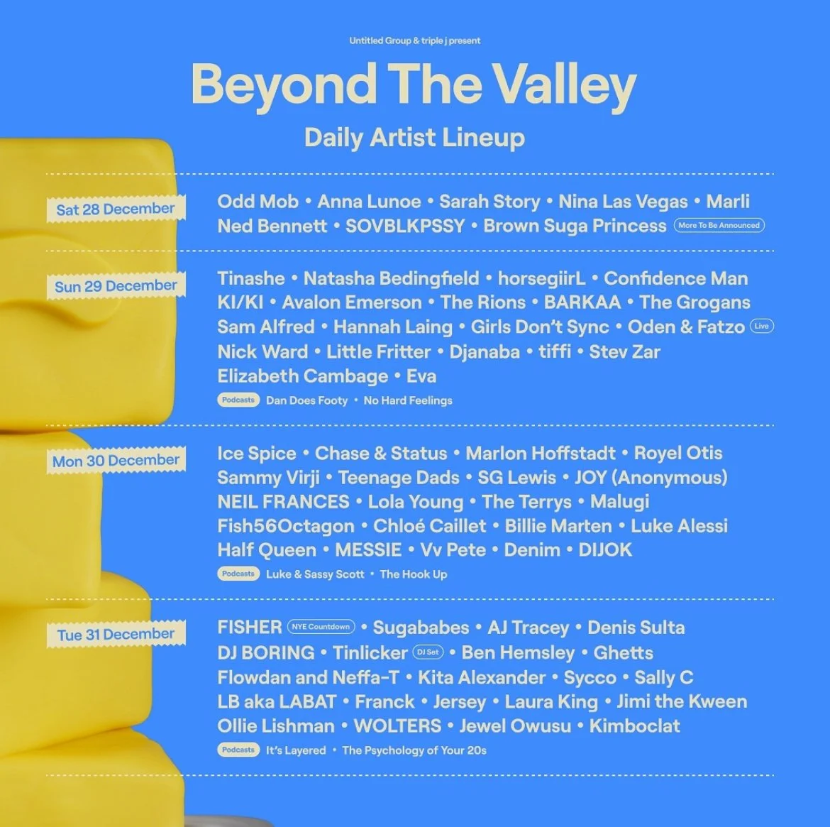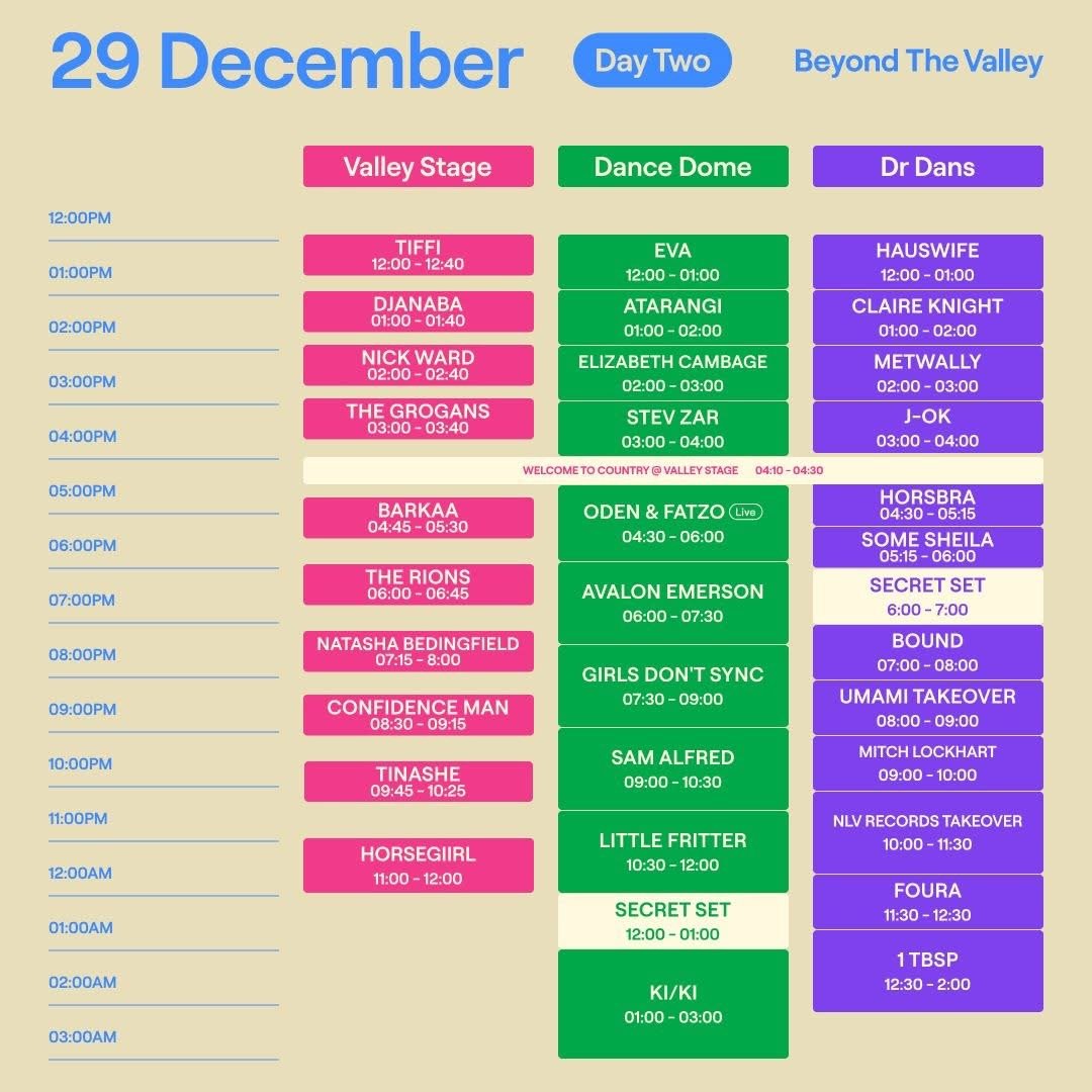 Back to All Events Beyond The Valley Saturday 28 December 2024 12:00 pm Wednesday 1 January 2025 10:00 pm Barunah Plains, VIC (map) Google Calendar ICS