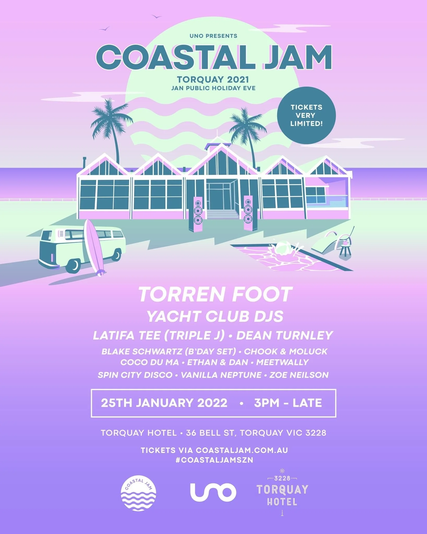 Back to All Events Coastal Jams Tuesday 25 January 2022 3:00 pm 11:00 pm Torquay, Vic Australia (map) Google Calendar ICS