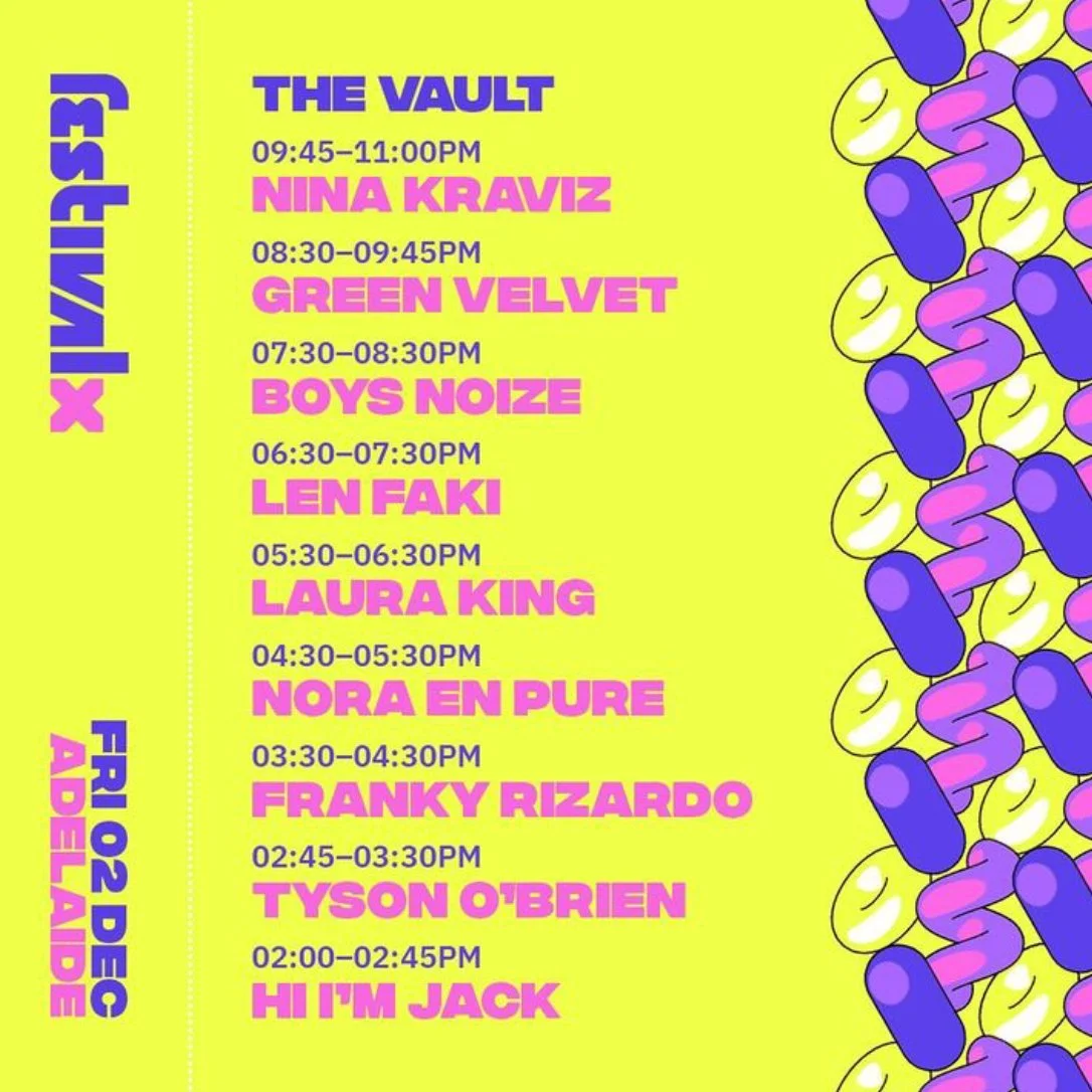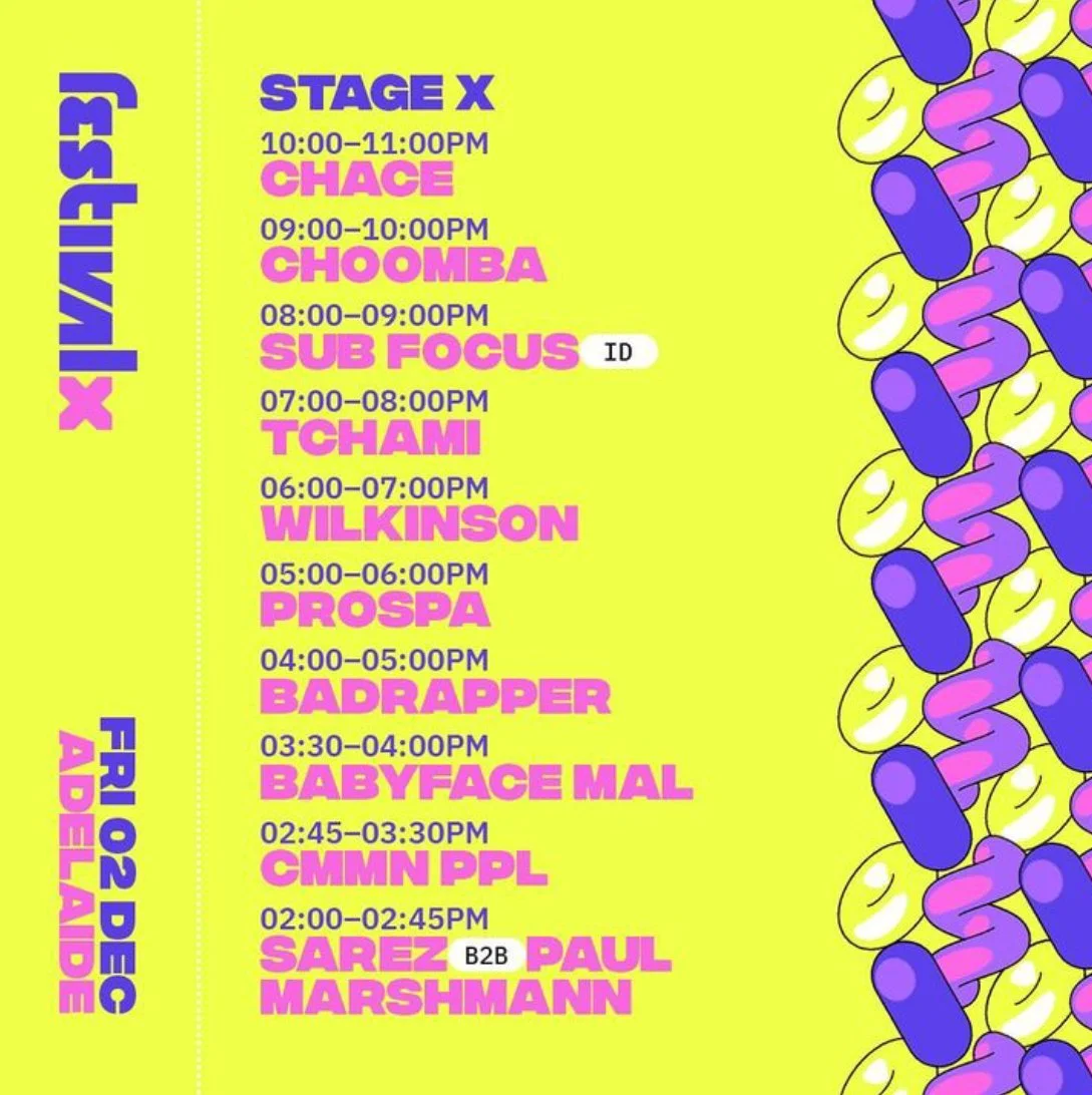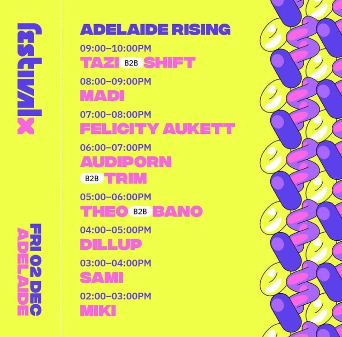 Back to All Events Festival X Friday 2 December 2022 2:00 pm 10:00 pm Adelaide , SA Australia (map) Google Calendar ICS https://www.festivalx.com.au