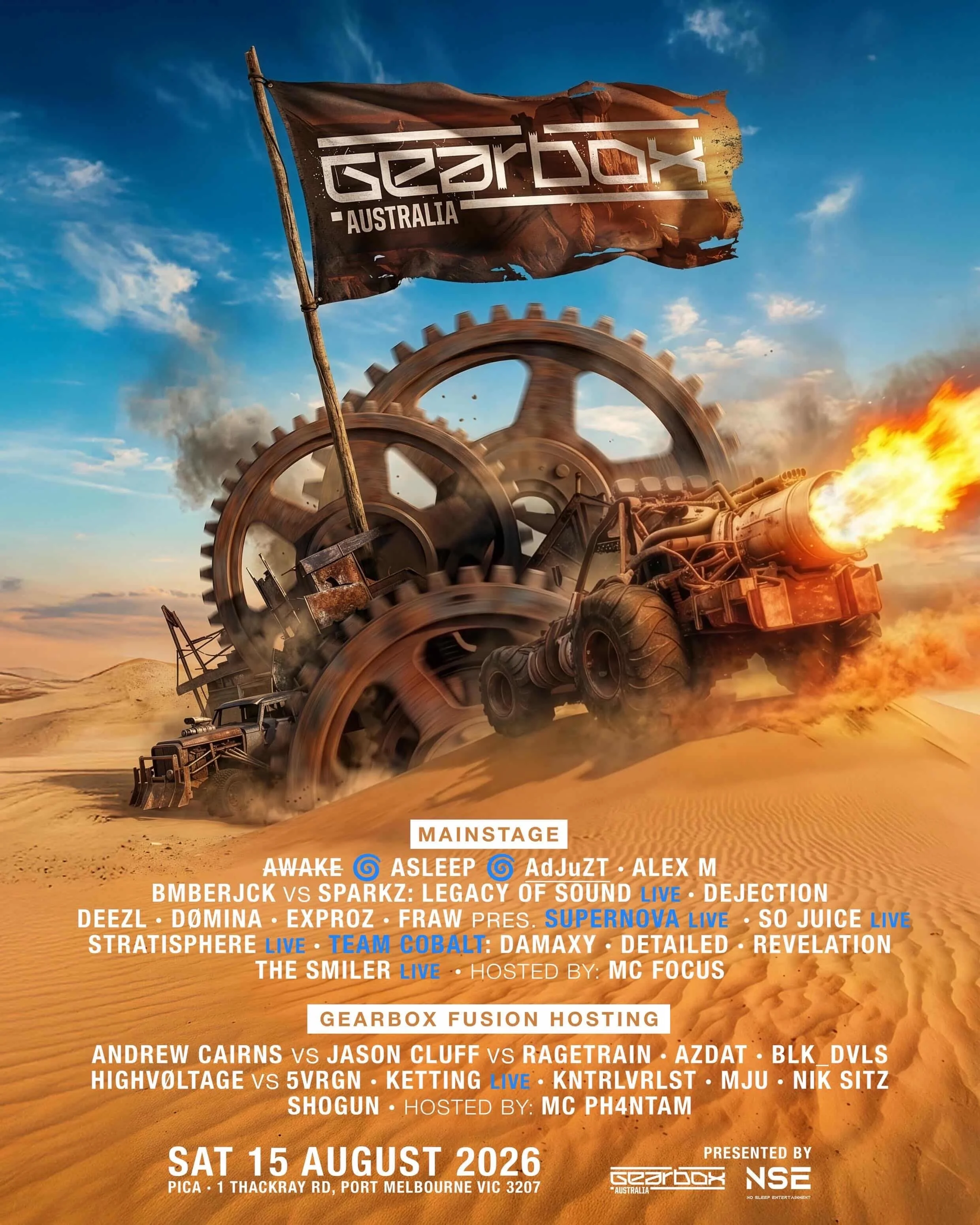 Back to All Events Gearbox Saturday 15 August 2026 2:00 pm 10:00 pm Melbourne, VIC (map) Google Calendar ICS