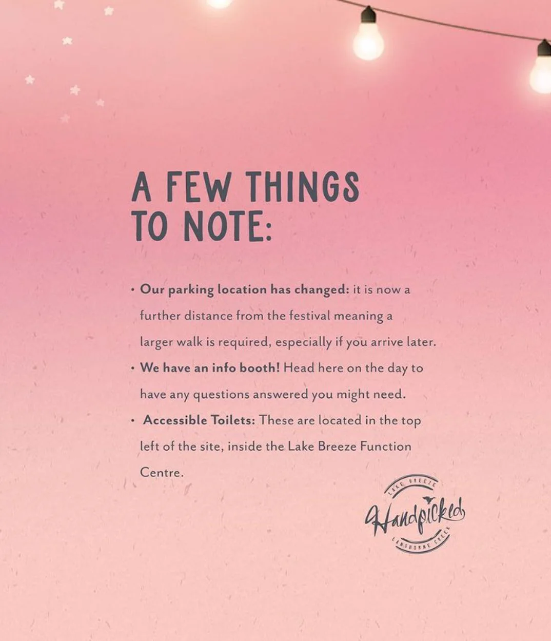 Handpicked Music Festival Saturday 12 November 2022 2:00 pm 10:00 pm + Langhorne Creek , SA Australia (map) Google Calendar ICS