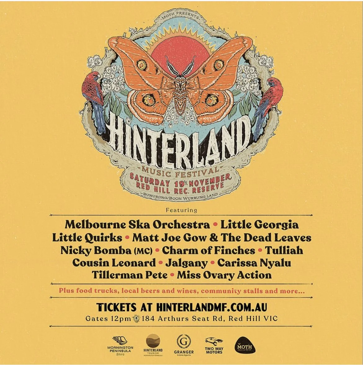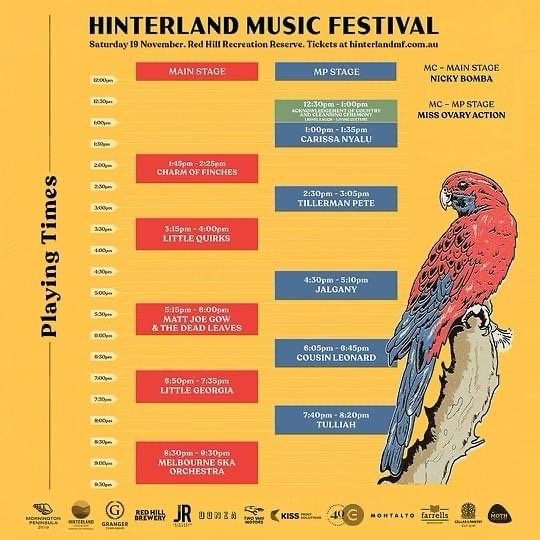Back to All Events Hinterland Music Festival Saturday 19 November 2022 12:00 pm 10:30 pm Red Hill, VIC (map) Google Calendar ICS