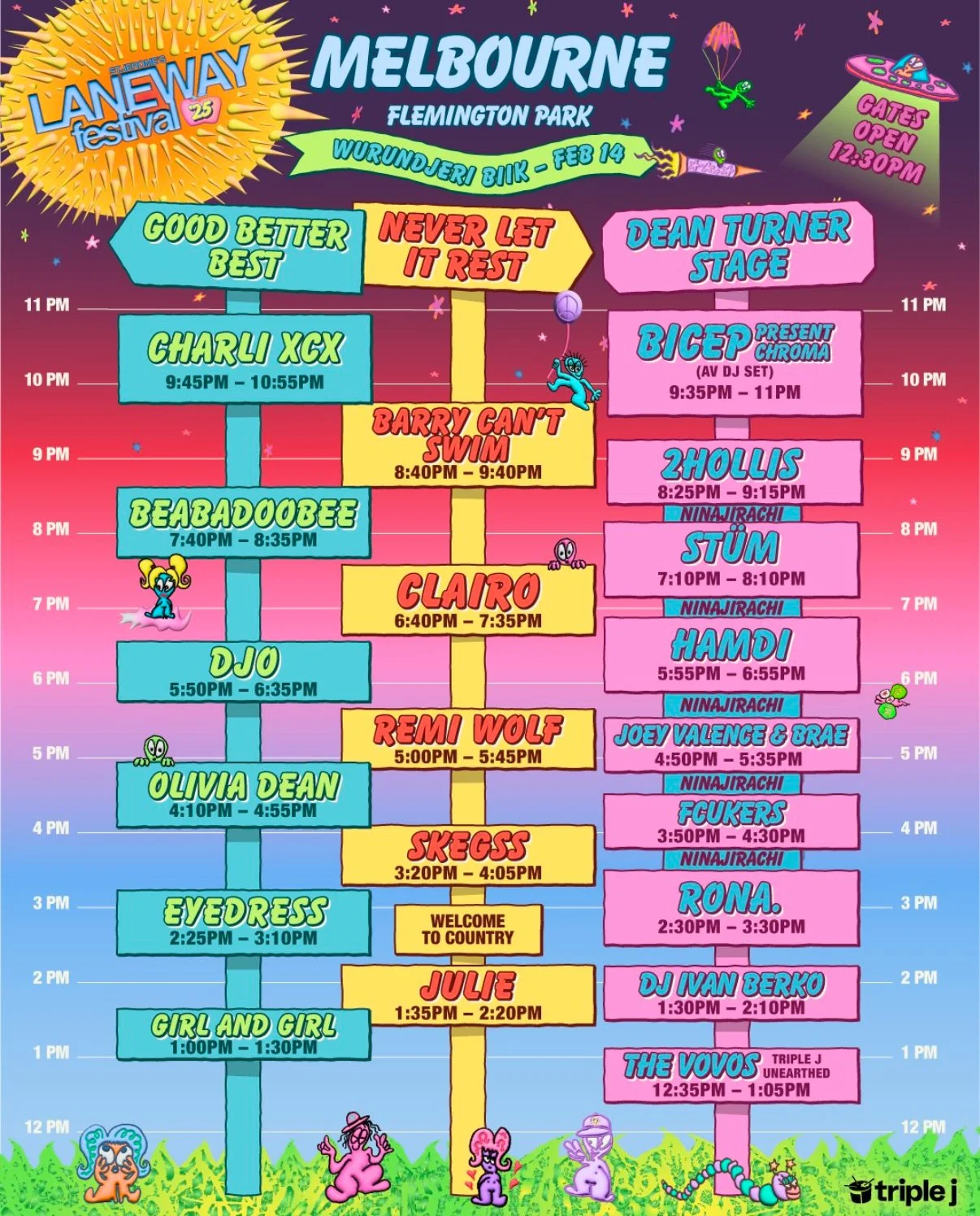 Back to All Events Laneway Friday 14 February 2025 12:00 pm 10:00 pm Melbourne, VIC (map) Google Calendar ICS https://musicfestivalsaustralia.com/news/laneway-lands