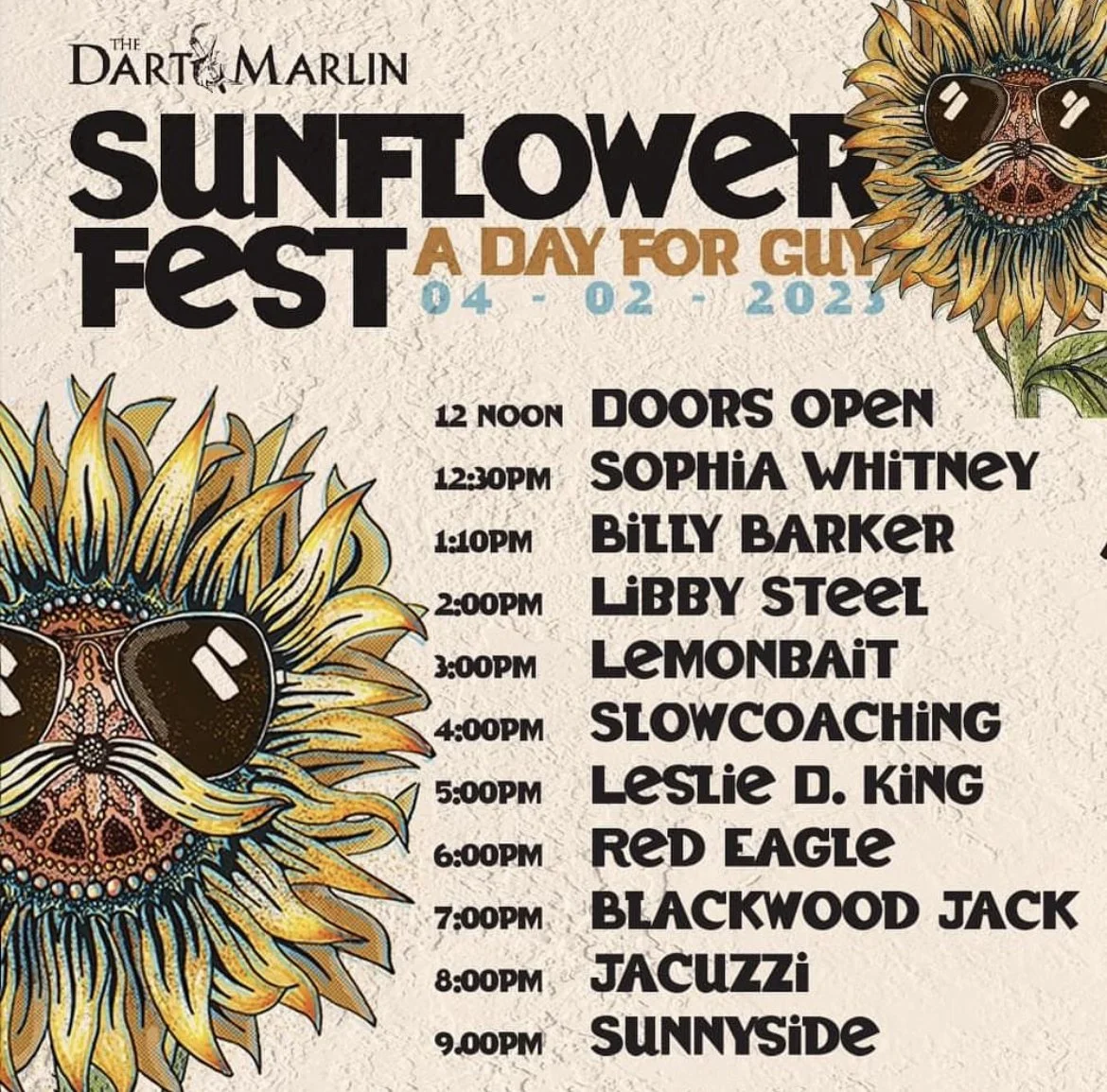 Back to All Events Sunflower Fest Saturday 4 February 2023 2:00 pm 10:00 pm Warrnambool, VIC (map) Google Calendar ICS