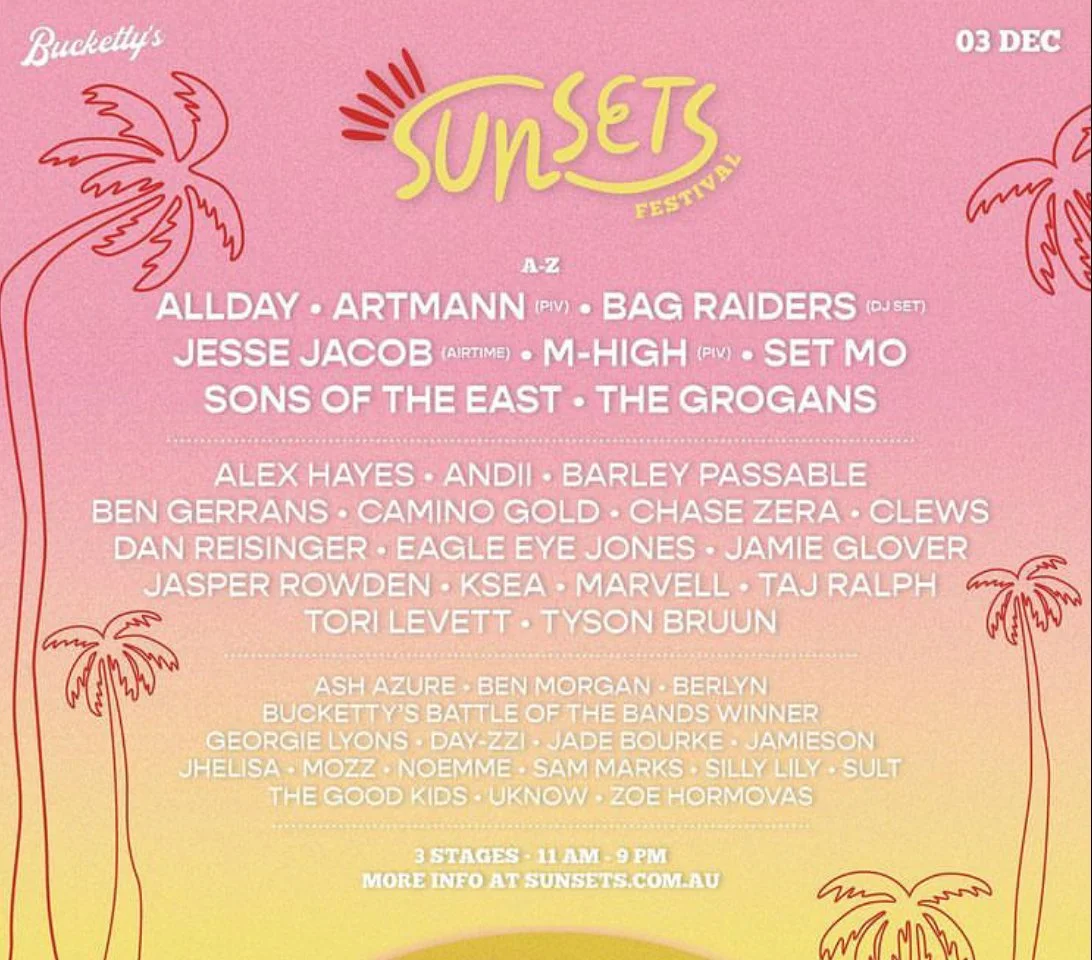 Back to All Events Sunsets Festival Saturday 3 December 2022 11:00 am 9:00 pm Sydney, NSW (map) Google Calendar ICS