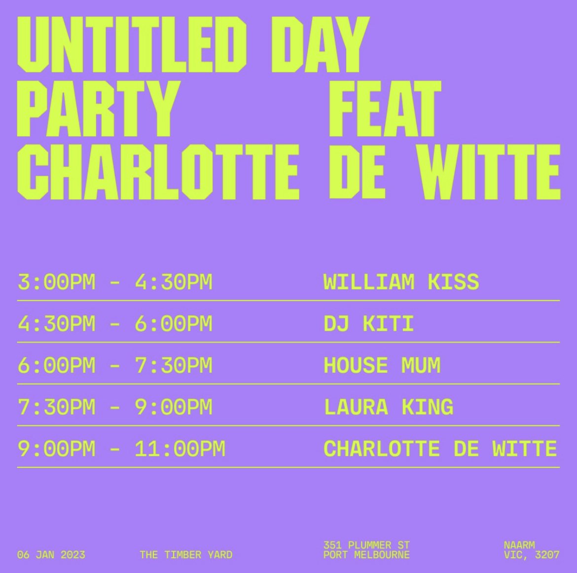Back to All Events Untitled Day Party Friday 6 January 2023 11:00 am 7:00 pm Melbourne, Vic (map) Google Calendar ICS