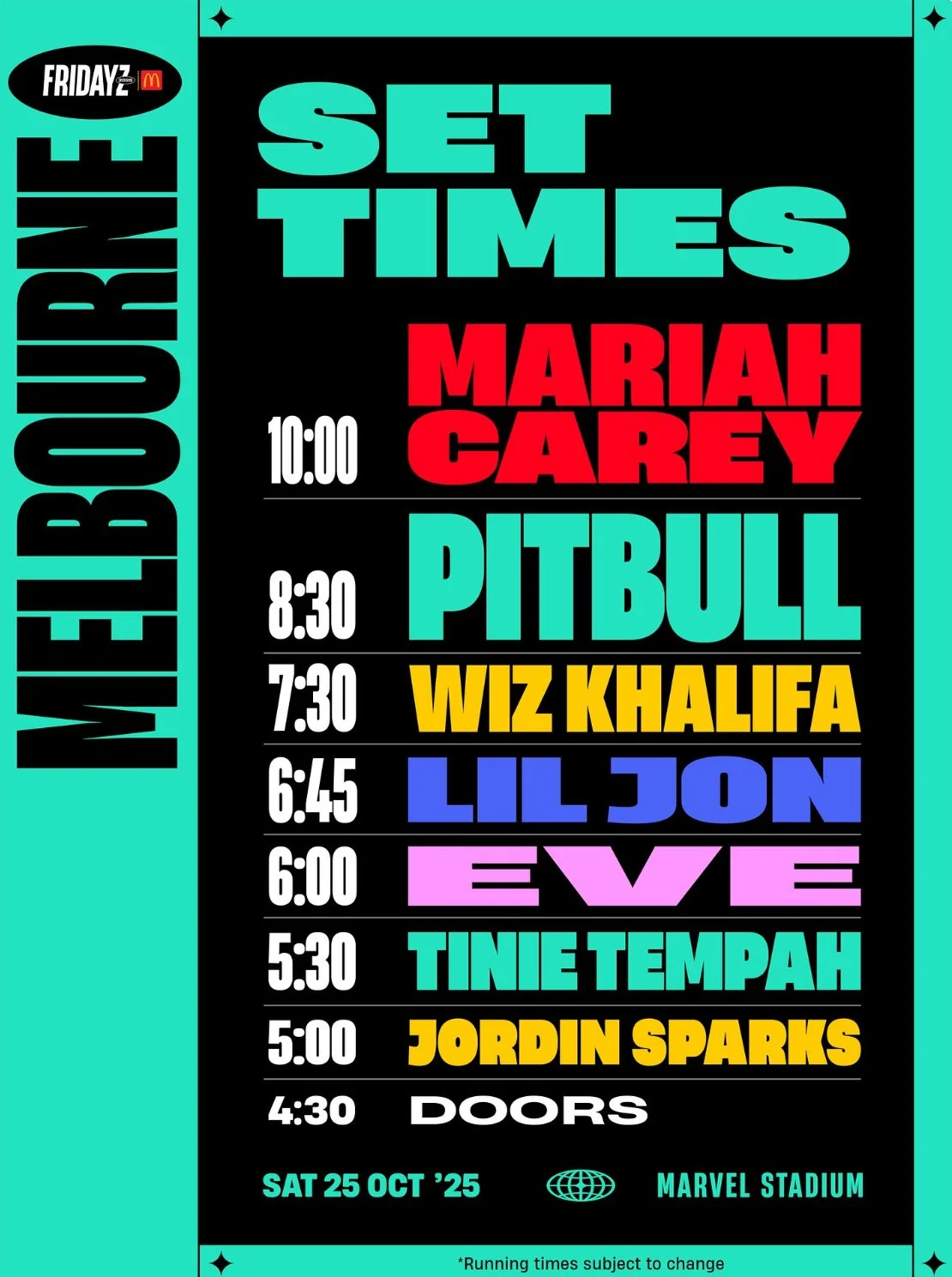 Back to All Events Fridayz Live Saturday 25 October 2025 12:00 pm 10:00 pm Melbourne, VIC Australia (map) Google Calendar ICS