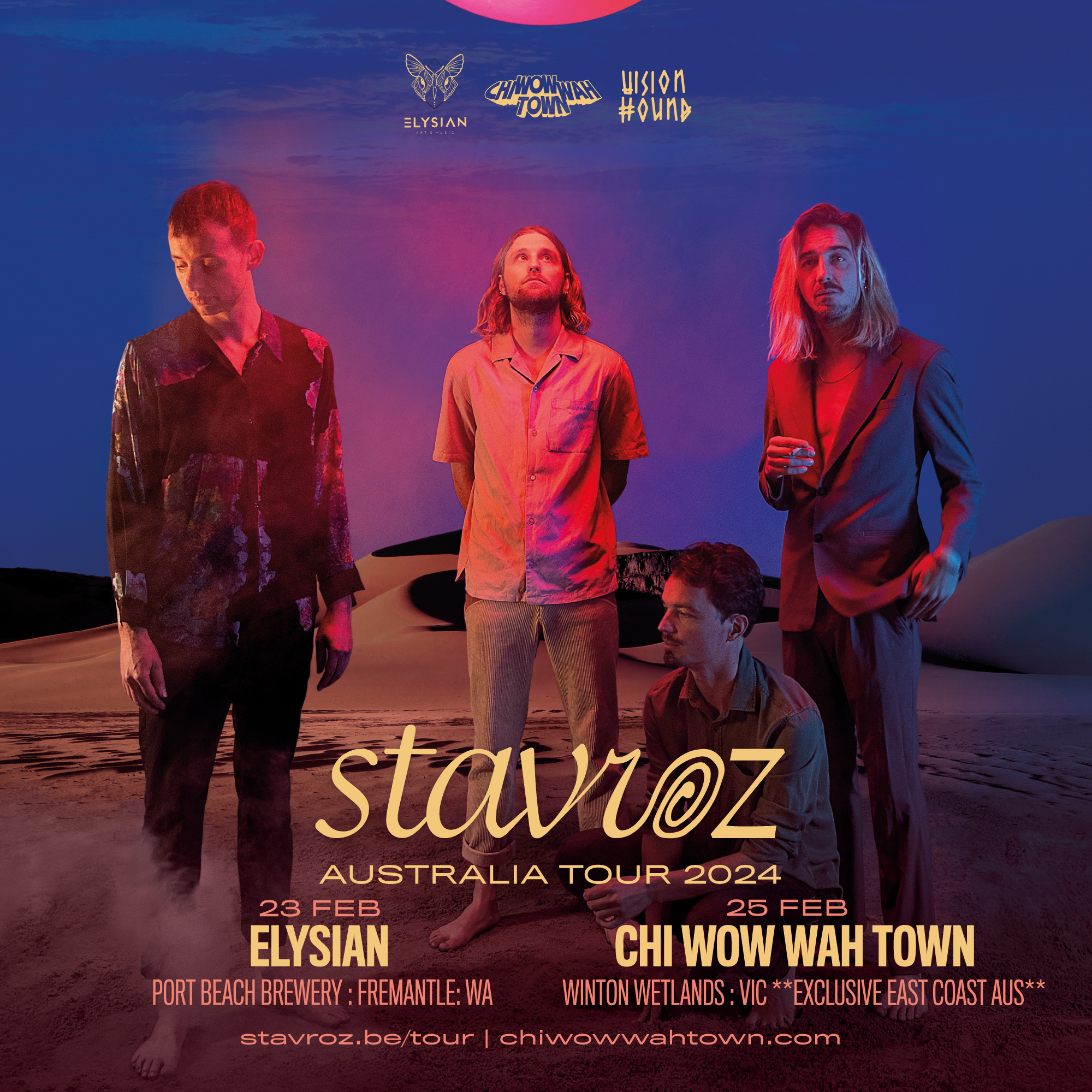 The 2024 edition of CHI WOW WAH TOWN kicks off in February, with a massive roster of International and Local artists and bands from a variety of genres. Set to take place in the tranquil setting of Winton’s Wetlands over three days this festival has a jam-packed program of Music, Art Installations, Workshops, market stalls and local food trucks. Headlining the festival will be European juggernauts STAVROZ . We caught up with the electronic musical wizards to ask them about what can fans look forward to from their CWWT set, where their planning to visit while in the country and the history & highlights of STAVROZ.