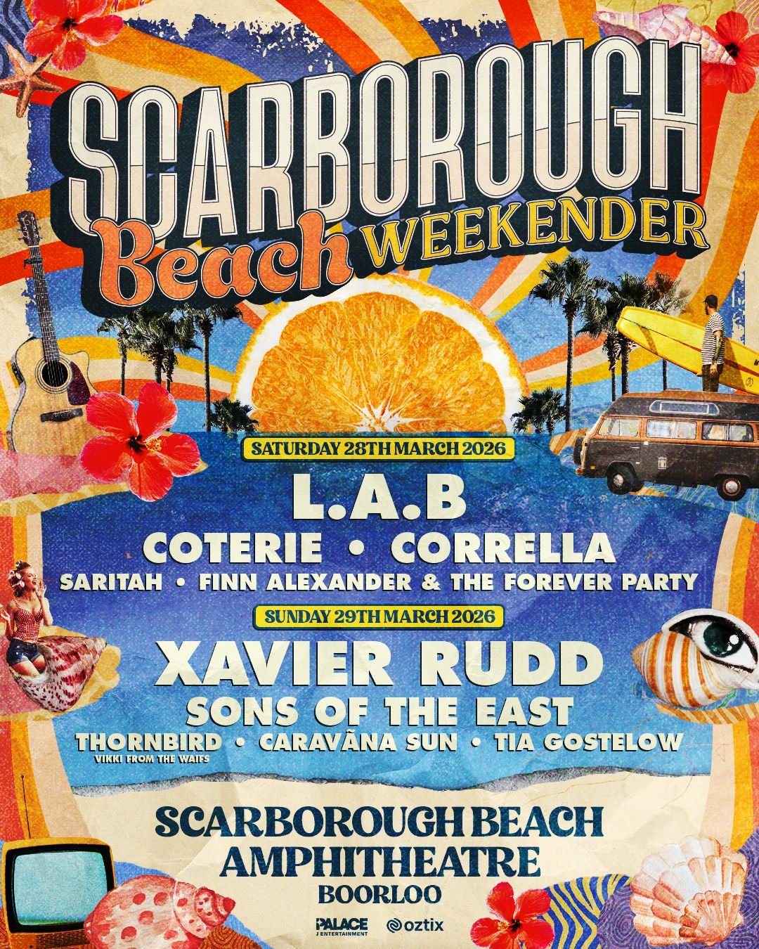 On Saturday the 28th and Sunday the 29th of March 2026, the Scarborough Beach Weekender will bring two days of live music and summer energy to one of Western Australia’s most iconic coastal venues. Presented by Palace J Entertainment, the event will unite major touring artists from Australia and New Zealand with a handpicked lineup of local favourites.