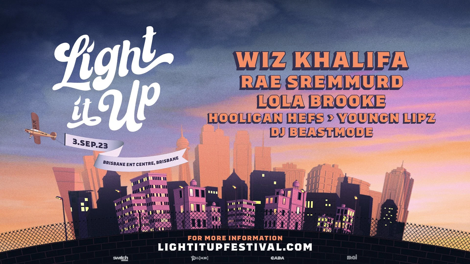 Kicking off in September 2023, LIGHT IT UP’s inaugural year will see some of the biggest names in hip hop hitting the largest entertainment venues across Brisbane, Melbourne, Adelaide, Sydney and Perth thanks to TEG MJR, Switch Events and CADA.