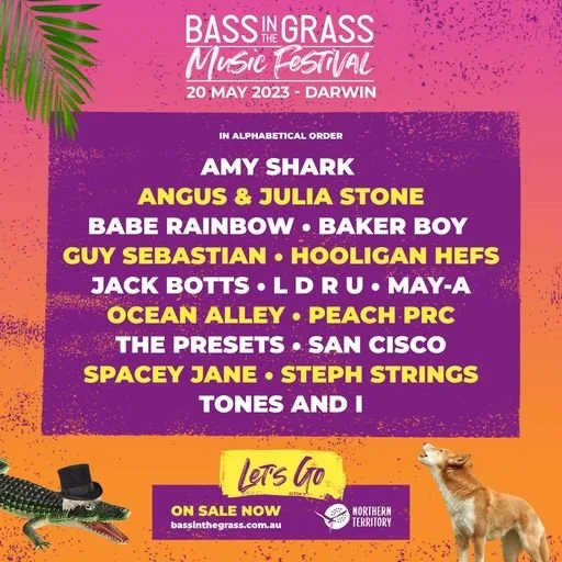 The Northern Territory’s premier music festival, BASSINTHEGRASS has announced its return for 2023 with a huge line-up of some of the country’s most popular and highest-selling artists. Set to take the stage in Darwin are Amy Shark, Tones and I, Hooligan Hefs, Baker Boy, Angus & Julia Stone and The Presets just to name a few, ensuring that BASSINTHEGRASS has a little something for everyone regardless of their taste in music.