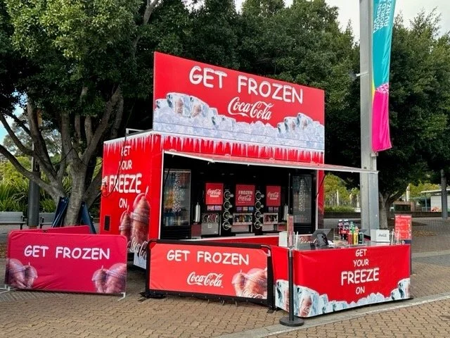 On board are 2 x Coca Cola Fridges stocking the 600ml range including Energy Drinks, Sports Drinks and Water, plus 3 x FBD Commercial Frozen Carbonated Beverage Machines which provide up to 7 different flavours in 2 different sizes. These professional machines maintain product consistency drink after drink, hour after hour. Even in our Australian summers, we know that your event attendees are not going without, because we don’t run out, sell out or require any downtime for our frozen drinks.